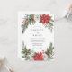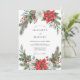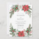 This botanical design captures the spirit of the holiday season with vibrant red poinsettias and elegant white roses. Nestled among the blooms are textured evergreen pine branches, holly leaves, and clusters of red berries. The watercolor artwork creates a sophisticated and festive atmosphere for a seasonal event. A classic palette of scarlet, emerald green, and snowy white defines this masterpiece.