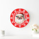Red Retro Jultomten Red Ric Rac jul Large Clock