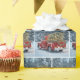 Red Retro Lastbil med Julgran i Snöflingor Presentpapper