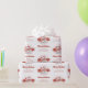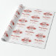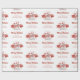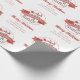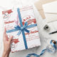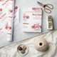 Den här designen har en papper julomslutning med ett modernt helgdag mönster, en vintage, rött och vitt, Jultomten, med renar, ärmliga rider, en söt vit roligt, typografiskt skript, kalligrafi, unikt presentomslag