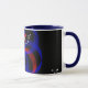 Elevate your next hot chocolate crave with this custom geometric inspired modern coffee mug. This product features a red revolving accented geometric circular theme and personalized custom text.