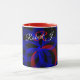Elevate your next hot chocolate crave with this custom geometric inspired modern coffee mug. This product features a red revolving accented geometric circular theme and personalized custom text.