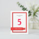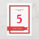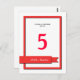 Rött Bordsnummer-kort med rött band tvärs över är perfekt för sittarrangemang i bröllop eller vid evenemanget. Finns även i andra färg. © Morgon 6