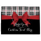 Den här produktdesignen har ett illustrerat rött band och tjärtan plaid mönster i svartvitt, vitt och rött. Med sin unika klassiska grafik gör den en modern chic stor presentväska med personlig för födelsedag, jul eller andra speciella tillfällen!