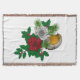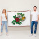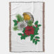 Handdragen rödrovfågel på en julbukett av fir grenar poinsettia och röda bär