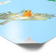 Robin Birds and Snowdrops, Galanthus nivalis, mönster på blekens blå bakgrund Photo Print. - Illustrerade motiv från Bild bok "The Redbröst" (skriven och illustrerad av Julia Doria). Motivering för utformningen av tidigt vår. Fågel och natur-gåva från älskare.