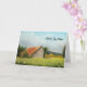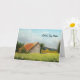 Det här hälsningskortet har en originalmålning av en sturdy röd-tak-lada i en solig ängsskugga av Jayne Wilson.