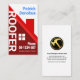 En enkel negativ utrymmesdesign där ditt företag "ROOFER" från den röda takytan i namn blandas till det vita utrymmet ovan. Din prestigefyllda namn ligger i det övre hörnet med kontaktinformation och ett alternativ för slogan med bildtext nära kortets bas. ; Du kan ändra textanmärkningarna till både företaget namn och parollen till kostym om dina egna tjänstebehov. På andra sidan, i ett vitt omslag, är överst en logotyp för hammaren i guld som du kan använda följt av ditt prestigefyllda namn, kontaktuppgifter och sloganalternativ. En underbar professionell för tak till använda.