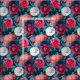Red, Rosa and White Peony and Lily Flowers Tyg