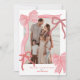 Fira säsongen i stil med detta charmerande, koquetteinspirerade julfotokort, med handdragna bovar, mjukt färg och en romantisk, limmad utformning. Framsidan har din favorit bild, som är uppbyggd av fyra handdragna bågar - två fet rosa-band med rött rand, plus två mindre accenter i klassisk röd färg och rosa. Baksidan ger utrymme för tre mindre foton och ett helgdag-meddelande, som ställs mot en glad röd bakgrund med ett känsligt båge mönster.