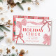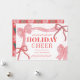 Fira säsongen i stil med detta charmerande, koquetteinspirerade julkort, som innehåller handdragna Helgdag, mjukt färg och en romantisk, limmad utformning. Framsidan har fyra handdragna knärör - två fet rosa-band med rött rand plus två mindre accenter i klassiskt rött och rosa. Baksidan ger en glad röd bakgrund med en känslig båge mönster.