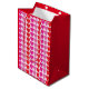 Röd, rosa, fuchsiska hjärtan i ett ljust rosa sammanhang