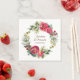 Personlig bröllop napkin skildrar en elegant vattenfärgsutandning av blommigt med rött och rosa ros, bär och grönt. Det är bröllop parets namn och datum. Brans val inför jul- och vinterbröllop.