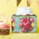 Elegant,färglös vintage blommigt design,röd gult kål ro på vattenblått teal bakgrund.med svart rand, klassenformad monogramdesign med ljusa färger.Enkel rosa med anpassade för initialer, särskilda tillfällen,födelsedagar,söt 16,quinceanera,bröllop,årsannonser möhippa