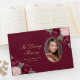 Anpassa enkelt den vackra röda och rosa blommigten genom att älska minnet/begravningsgästen bok med ett foto med vattenfärgsröd färg och rosa ros och baby utandningsblommor med röd mörk.