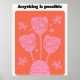 Red Rosa Illustrated Blommigt Aesthetic Quote Wall Poster