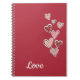Red Rosa Kärlek Hearts (vit text) Anteckningsbok