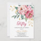 Red Rosa Peony Guld Löv Rustic Blommigt Birthday Inbjudningar