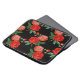 Red roses contrasted with a black background, colorful pattern.