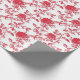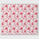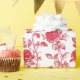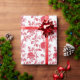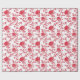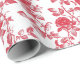 A romantic, vintage toile de jouy pattern featuring bright red roses against a crisp white background.