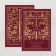 Ange tonen för bröllop i din medeltida fantasi med en djärv inbjudan - ett stort guld-svärd omgivet av blommigtar mot en röd bakgrund. Perfekt för par som drömmer om ett episkt, romantiskt firande. Gör din berättelse från kärlek till legendariska från första början! OBS! guld som ingår i denna design är INTE äkta folie.