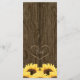 ETT SUNFLOWER-MENYKORT MED LAND CHARM OCH ETT RUSTISKT FOL MED EN TRÄGRAN TRÄGG ELLER BARREL-BLODKONSTRUKTION OCH EN NAGEL-HUVUDSTRIM. EN RÖD BANNER PÅ FRAMSIDAN OCH EN BÄRBAD HJÄRTBORTKONSTRUKTION PÅ BAKSIDAN DÄR INITIALERNA AV BROMSKÅLEN OCH GRUMSKÅDAN LÄGGS TILL. EN BOUQUET AV GOLDEN GULT SUNFLÖDEN HAR EN VINTAGE OCH HAR EN PAINTERLY LOOK. PERFEKT FÖR EN BRÖLLOP ÅRSDAG ELLER FÖRLOVNINGSFEST MED ETT BARN ELLER ETT JORDBRUKSTEMA. DESIGN © CHRISSY H. STUDIOS, LLC. ALLA HÖGER RESERVERADE.