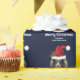 Red Santa Hat Anpassningsbar Photo Template on Blu Presentpapper