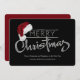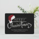 Modern korporera julkort med silver God jul-manuset och julhatt mot svart bakgrund. Detta moderna röda julkort och julkort från silver är enkelt att anpassa genom att helt enkelt lägga till ditt budskap och din logotyp i det teckensnitt du väljer mellan stil och färg. Du kan också ändra bakgrunden till färg.