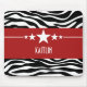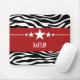 Trendig och modern Sassy Star Zebra Mousepad med en chic svart och vit zebra tryck-bakgrund och ett fet rött gräns med roligt stjärnmotiv. Den här giftiga designen kan anpassas med den personlig du väljer. Klicka på Anpassa om du vill söka efter fler anpassningsalternativ.
