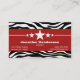 Red Sassy Star Zebra tryck Affärskort Visitkort