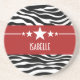 Trendig och modern Sassy Star Zebra Sandstone Underlägg med en chic svart och vit zebra tryck-bakgrund och en fetstilt röd gräns med roligtens stjärnmotiv. Den här giftiga designen kan anpassas med den personlig du väljer. Klicka på Anpassa om du vill söka efter fler anpassningsalternativ.