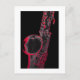 En dramatisk bild av en saxofon i svartvitt med röda högdagrar, på svart bakgrund. Underbar för sax älskare!