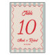 Red Script Blue Line Retro Wedding Table Number Bordsnummer