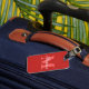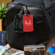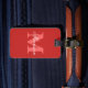 Rött skript i monogram bagagemärke: elegant av personbagagets identitet