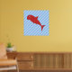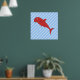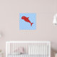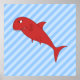 En röd hajtecknad på blått rand. En utformning av tecknaden hos roligten.