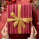 Red Shimmer Satin Stripe Julafton Wrapping Papper