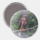 Den här magneten har en stor röd hawk i träd i skogen i Connecticut.