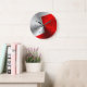 Bild av metallisk röd och silver, delad skärm-geometrisk utformning.