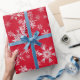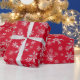 Röda och silver snöflingor på denna julklapp som är papper.