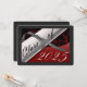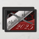 Röda och silver studenten-kort med ett diplom och studenten år på kortet. Baksidan är en grått-bakgrund med vita bokstäver för studentfestens inbjudningar.