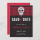 Bold Red Snöre Mexican Sugar Skull Day of the dead Bröllop spara datum. Dessa tillkännagivanden om sockerskalle day of the dead bröllop är en underbar för alla bröllop eller speciella händelser, offslagad brud eller day of the dead skalltemat bröllop! Svart och rosa visas. E-post om du vill ha anpassningsbar färg-ändringar: articulosdepapel@gmail.com eller via Zazzle. Koordinationskort är alltid tillgängliga!