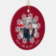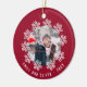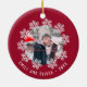 Red Snowflake Ram par Keepsaké Photo Ornament. Vinterdesign med ett foto omgivet av vackert vitt snöflingor. Bakgrunden är röd med en snöflinga mönster. Lägg till fotot och anpassa meddelandet och namn. Anpassa den med ditt namn och år. Söt keepy för ett par.