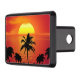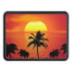 Ett fantastiskt foto med lysande sent dagar färg vid utställningen sol över havet med handflatan träd, "Red sol vid night Sailors Delight"
