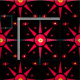 Den här färglösa textildesignen har en geometrisk abstrakt mönster i en upprepad, stor röd stjärna omgiven av dubbla röda stjärnor, allt med gult centrerad, på en rent svart bakgrund. Ändra enkelt bakgrunden till färg genom att anpassa ditt speciella projekt till kostym.