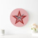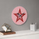 Modern design med en "skuggad" röd och vit stjärna på blekens rosa bakgrund. Väggklocka med anpassade som du kan anpassa med din egen text, bilder och dina idéer. Observera att detta är en tryckt bild som skapats med originalfotografier och digitalteknik, som inte skiner eller innehåller riktiga miniatyrbilder.