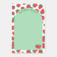 Perfekten klibbigt anteckningsblock för sommaren med en juicy mönster av röda jordgubbar. Lägg till ditt namn i böjd grönt högst upp på en matchande bågform, med ett par jordgubbar kapslade i ett hörn.