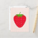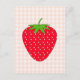 Snygg röd jordgubbskonstruktion, med en grönt överst och en ljus rosa gingham-bakgrund i mönster.