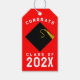 Klassiska studenten-grattisar ger märkre för grad party favors med svart lock med guld tassel på röd bakgrund. Redigera text som ska läggas till år.