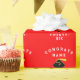 Kreativ studenten klackar för klass "25 grad" med svart studentmössa med guld tassel på röd bakgrund. Om du vill anpassa redigeringstexten så att namn läggs till.