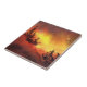 Red sunset original art Gräs Träd Tile Kakelplatta